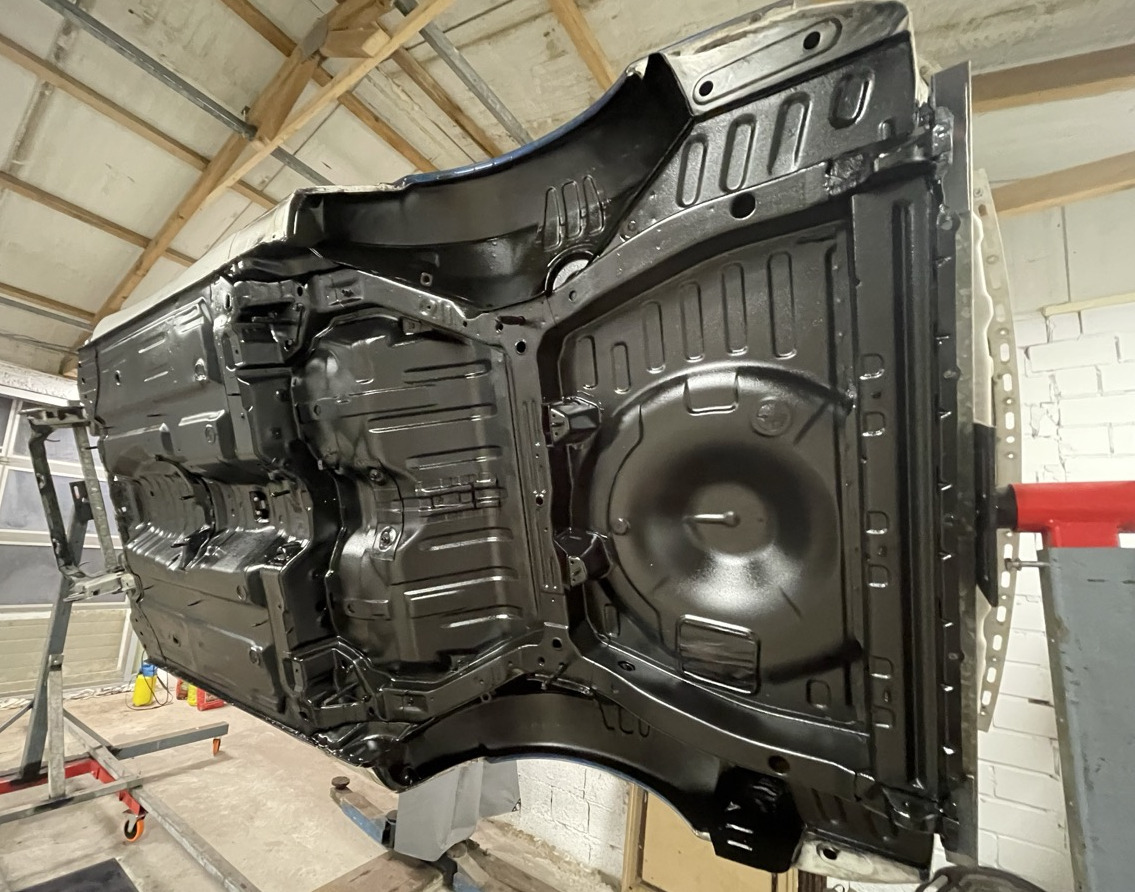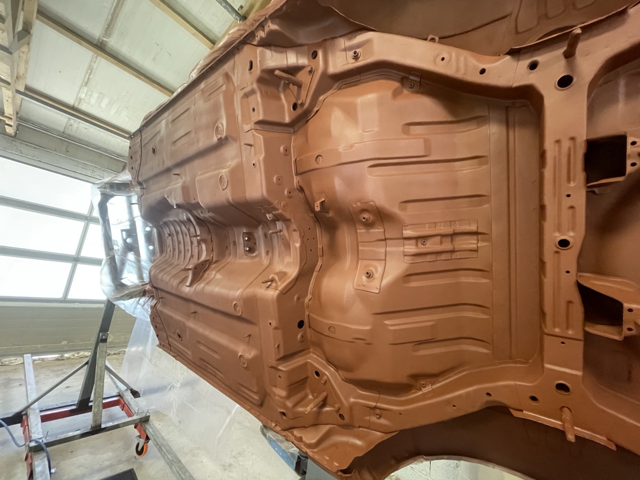 Der Unterboden wird später ohnehin noch mit Wachs versiegelt, das kommt aber erst nachdem der Wagen seine Außenfarbe erhalten hat.