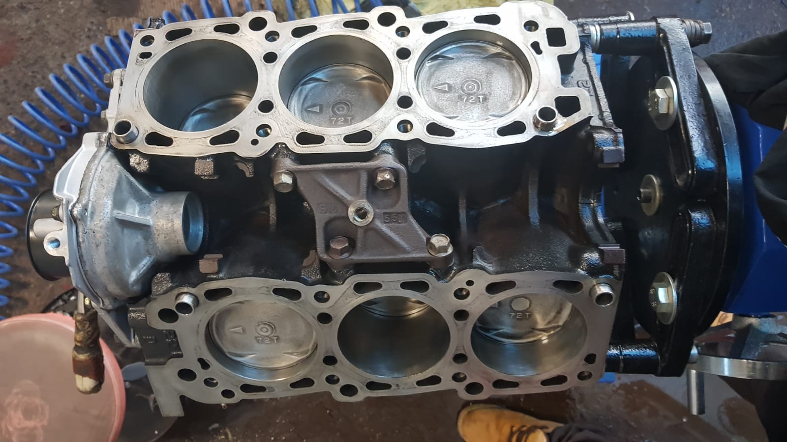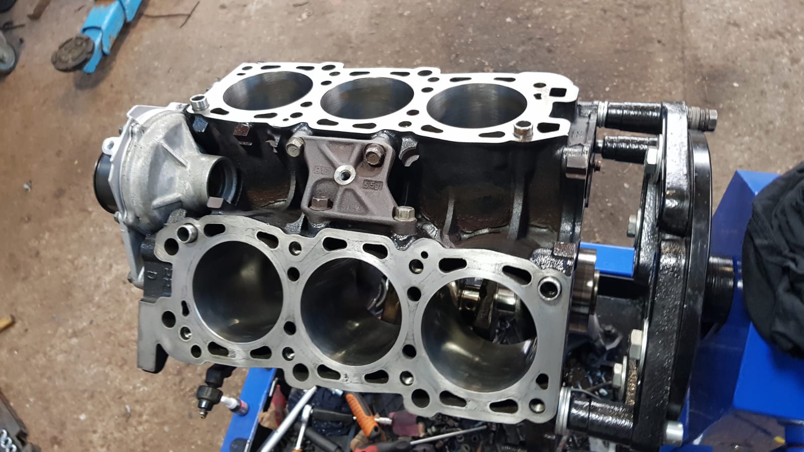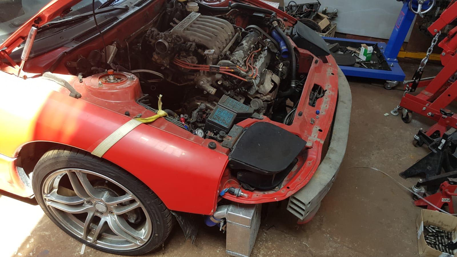 Der demolierte Gen1 Motor musste raus. Da wir wussten, dass ich auf Leistung gehen möchte, wurde entsprechend der gen2 4 Bolt Motor aufgebaut und die CAS problematik gelöst (Gen1 Kabelbaum).